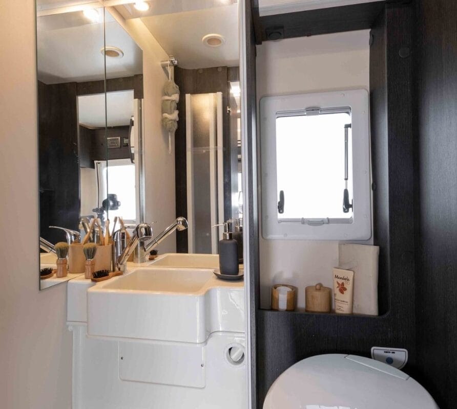✔ Separate shower area ✔ Toilet with smart space usage ✔ Sink with storage for toiletriesAmple Storage & Smooth Driving Experience